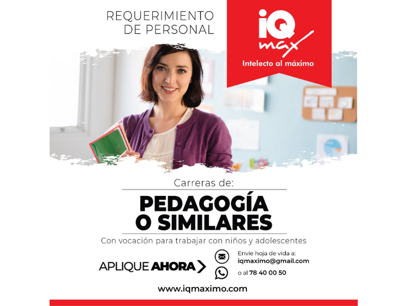 SE REQUIERE Parvularia (guardería) para Chiñata-Sacaba, que sea amable, responsable, dinámica, activa y paciente con los niños de preferencia que viva por Sacaba llamar al 67469035.