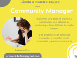 BUSCAMOS Community Manager. Si estudiaste Marketing, te gustaría trabajar en la planificación de campañas comerciales con productos femeninos y tienes disponibilidad de medio tiempo. ¡Este trabajo es ideal para ti! Envíanos tu CV: promark.bolivia@gmail.com