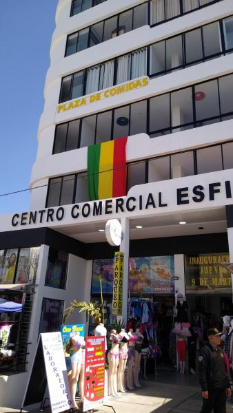 CENTRO COMERCIAL ESFINGE Tiendas, plaza de comidas, departamentos 1, 2, 3 dormitorios Zona Comercial Mercado 10 de febrero avenida Simón López. Se aceptan vehículos como parte de pago. 63903611