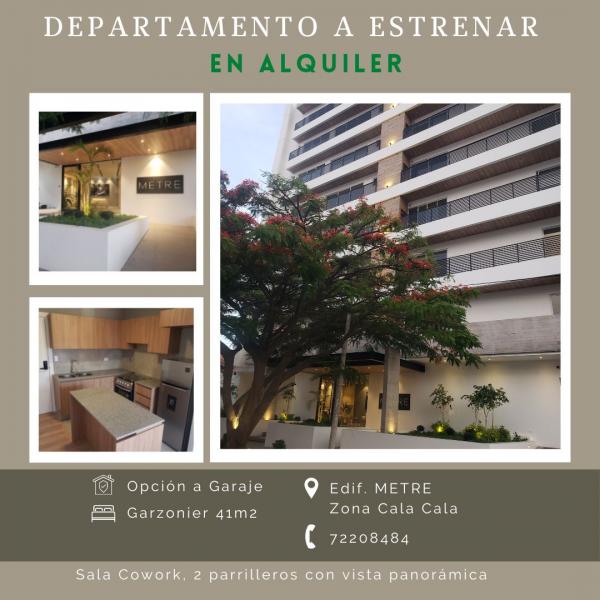 Garzonier Equipado. Incluye expensas, opción a garaje. Zona Cala Cala. Interesados contactarse al 72208484.