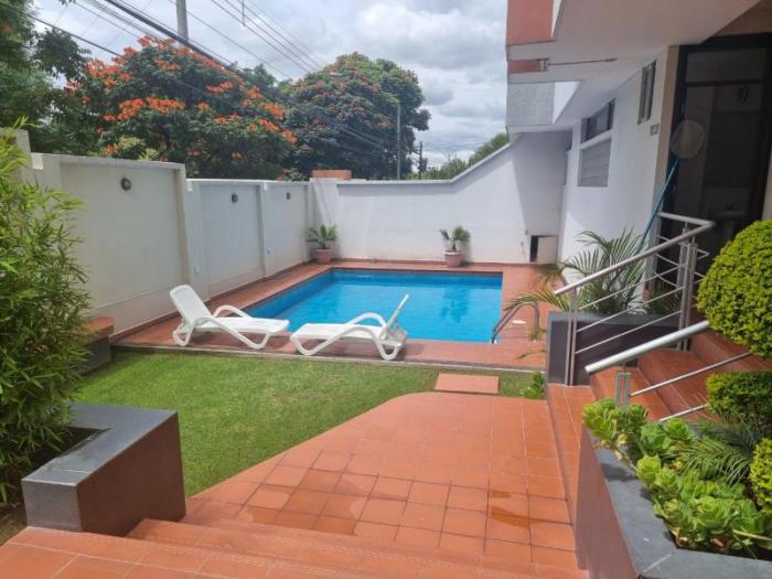 PROPIETARIO Alquila elegante departamento amoblado 200 m2 panorámico en esquina NE, sobre parque Fidel Anze, Edificio Caiso. Con 3 dormitorios, amplias dependencias y dos parqueos. Piscina atemperada, parrillero, salón. $us 900. Facturable. Tel. 76912858