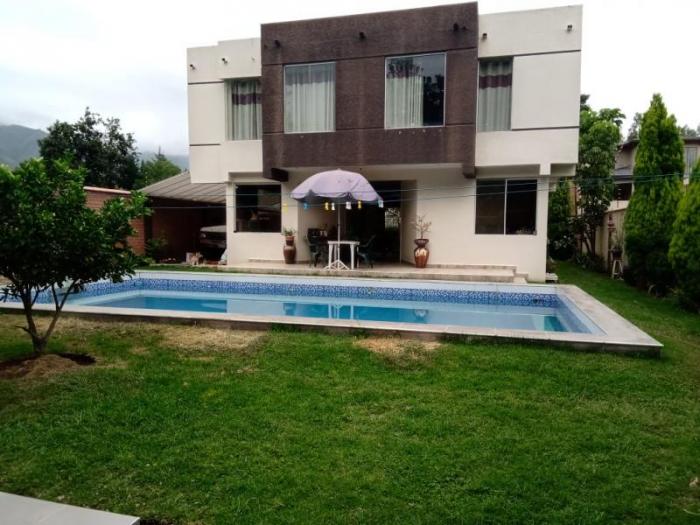 Vendo casa en Tiquipaya zona residencial: 4 suites, 2 cocinas, garage amplio, agua propia, piscina, jardines. WhatsApp: 68451883