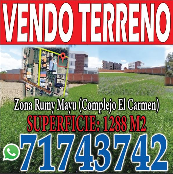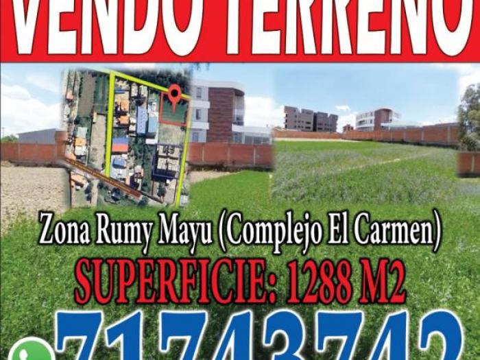 ZONA COMPLEJO EL CARMEN, RUMYMAYU. PROPIETARIO vende terreno. Papeles en orden. 1288 m2, 205000 $US. OFERTABLE. 71743742